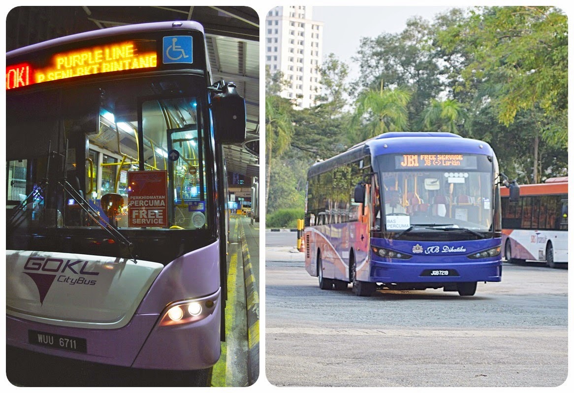 | in KL and several other cities there are public (purple) buses for free/w KL i wielu innych dużych miasytach są darmowe fioletowe autobusy/ en KL y otros ciudades hay autobuses violetas gratuitos |
