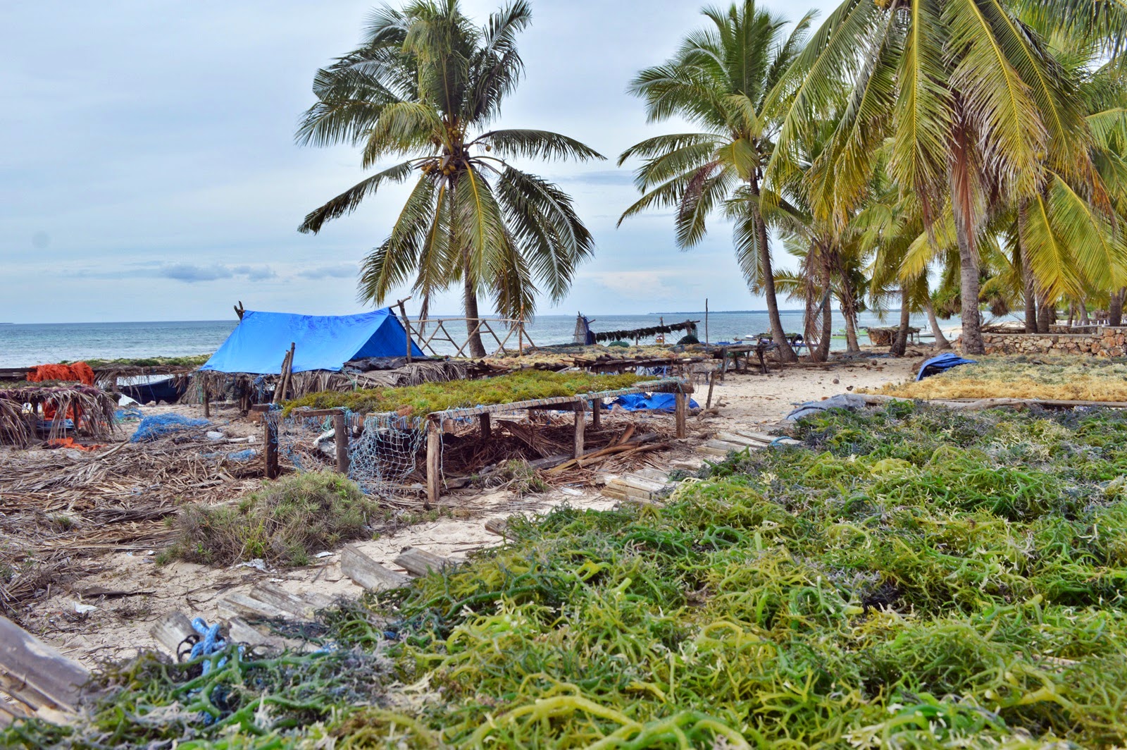 Nemberala estaba llena de cerdos, gallinas, cabras y vacas por todas partes que merodeaban en busca de comida, la costa era una basta extensión de cocoteros y la orilla era un mosaico de algas dispuestas a secarse.